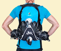 Немецкая фирма «Deuter» предоставляет вам новинку в виде рюкзака для роликов «Winx». Данный вариант некоторым образом схож с велосипедной моделью «Cross Bike», но система крепления самих роликов здесь более продумана. Немецкие специалисты всегда отличались изумительным пошивом самой разнообразной продукции, а материалы очень хорошие и нереально легкие. Спинка рюкзака наделена вентиляционным каналом в районе позвоночника. Технология пошива и оформления переносит вес на плечи и снижает нагрузку с позвоночника. Лямки рюкзака чрезвычайно мягкие, любой вес не причинит вам дискомфорта.
