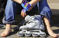 Процесс торможения действительно очень важен при катании на роликах. Но эффективность, а самое главное — безопасность торможения, зависит от множества факторов. Среди нкоторых и скорость движения, ширина трассы, качество дорожного покрытия и многое другое. Для начала мы попробует рассмотреть торможение о какое-нибудь препятствие. Необходимо всеми силами стараться избежать прямого столкновения с каким-либо препятствием. Наиболее эффективным способом будет движение по касательной, иными словами, вы должны уцепиться за что-то руками, что, в конечном итоге, приведет вас к развороту и понижению скорости. Торможение в виде «Ass-stop» — это так называемое «садимся на пятую точку». Конечно, в этом случае вероятность получить травму очень высока. Это может быть повреждение копчика, сдирание кожи и т.д. «Grass-stop» — это один из самых эффективных и безопасных способов экстремального «нетехнического» торможения. Вы просто выпрыгиваете на газон. И как следствие, вы просто проскользите на боку, а если вам удастся устоять на ногах, вы пробежитесь по траве без каких либо повреждений. Вариант ваших действий будет напрямую зависеть от сложившейся ситуации и от скорости движения. Конечно, ролики будут не в лучшей форме после пробежки по газону, ну выбор уже за вами: повредить немного ролики или же себя. «Плуг» или «V-stop» — это более техничный способ торможения, но не настолько эффективный как вышеописанные. Но с другой стороны он более безопасный для вас. Вам необходимо развести ноги в стороны и начать сводить носки роликов друг к другу. Эффективность этого вида торможения напрямую зависит от развития мышц ваших ног. Штатный тормоз. Этот вид торможения зависит от ваших навыков и мастерства катания. Но в виду легкости изучения и относительно высокой эффективности, рекомендуется для применения начинающим роллерам.